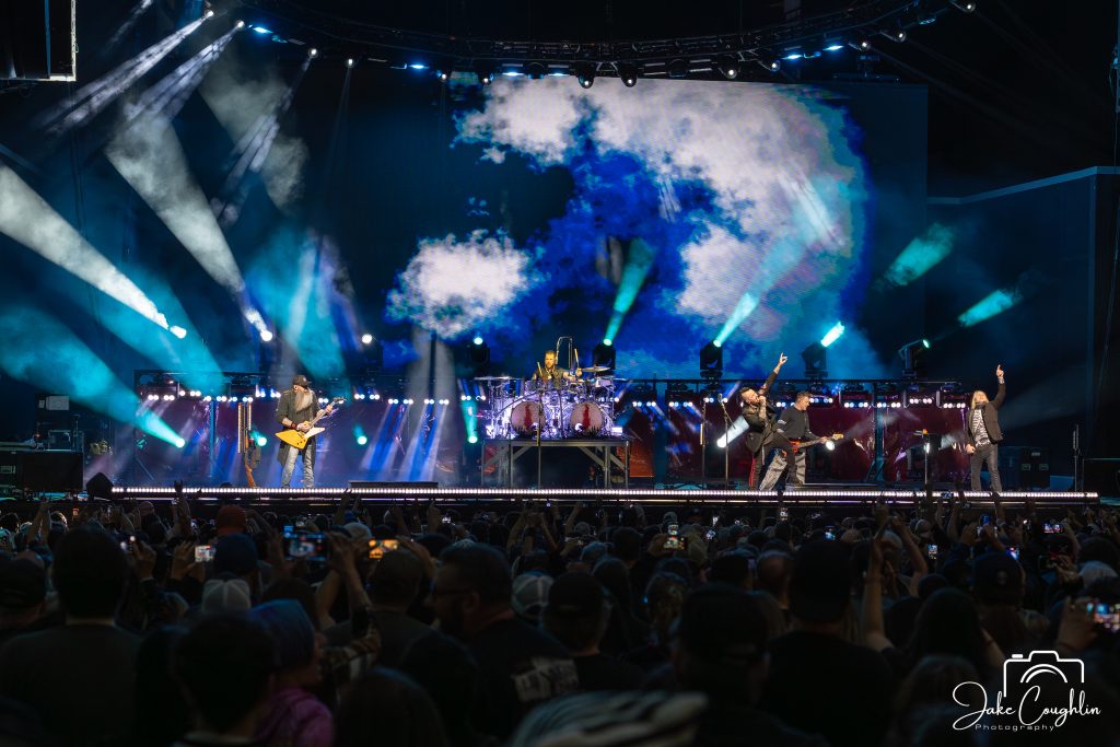 Finally, Three Days Grace closed the night with something that felt bigger than just a performance, especially with Adam Gontier back on stage. There was a weight to their set that you don’t really get unless a band has that kind of history. Adam Gontier and Matt Walst singing, side by side, is just pure magic. Every song landed with a sense of familiarity, but not in a tired way. The crowd didn’t just sing along, their entire souls sang along. You could hear it in how loud the choruses got, with crowd surfers letting every ounce stress out. The energy of Three Days Grace set was thunderous from start to finish. No overproduction, no distractions…just a band and a crowd completely locked into each other to close the night.